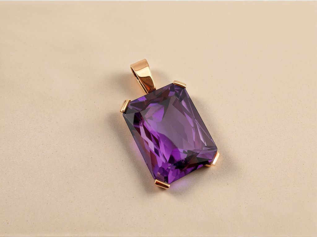 Dominantou přívěsu je přírodní ametyst o impozantní váze 19 ct. Jeho hluboká fialová barva působí klidně, noblesně a zároveň velmi výrazně. Ametyst byl po staletí považován za kámen králů, duchovní rovnováhy a ochrany. Precizní brus podtrhuje jeho vnitřní kresbu a zajišťuje krásný lom světla při každém pohybu.
