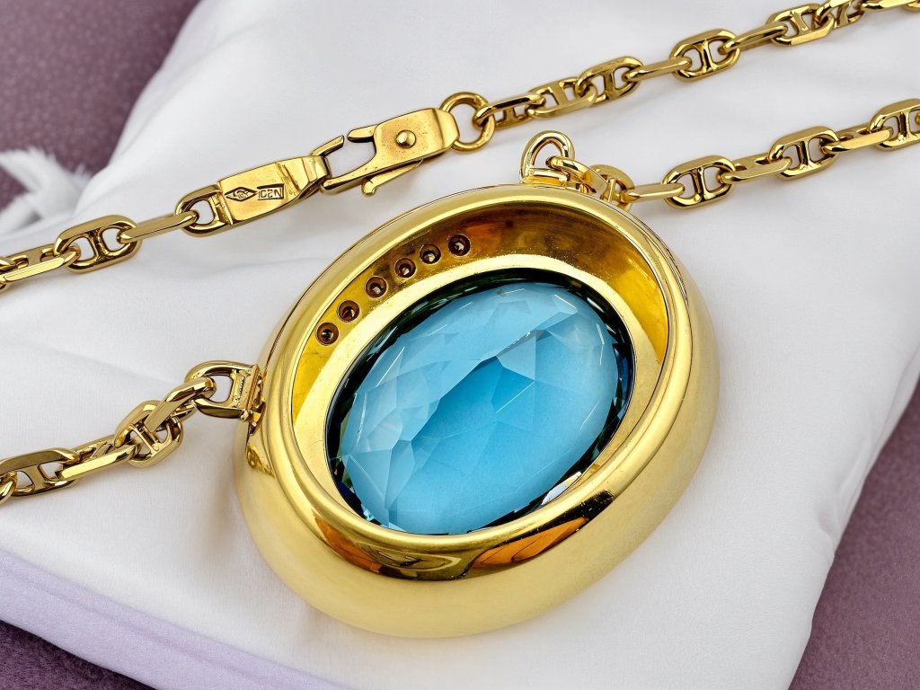 Luxusní Náhrdelník s Mimořádným Topasem a Diamanty 14k. a 18k. zlato, Topaz 35ct. a Diamanty 0,30ct. G/VSI