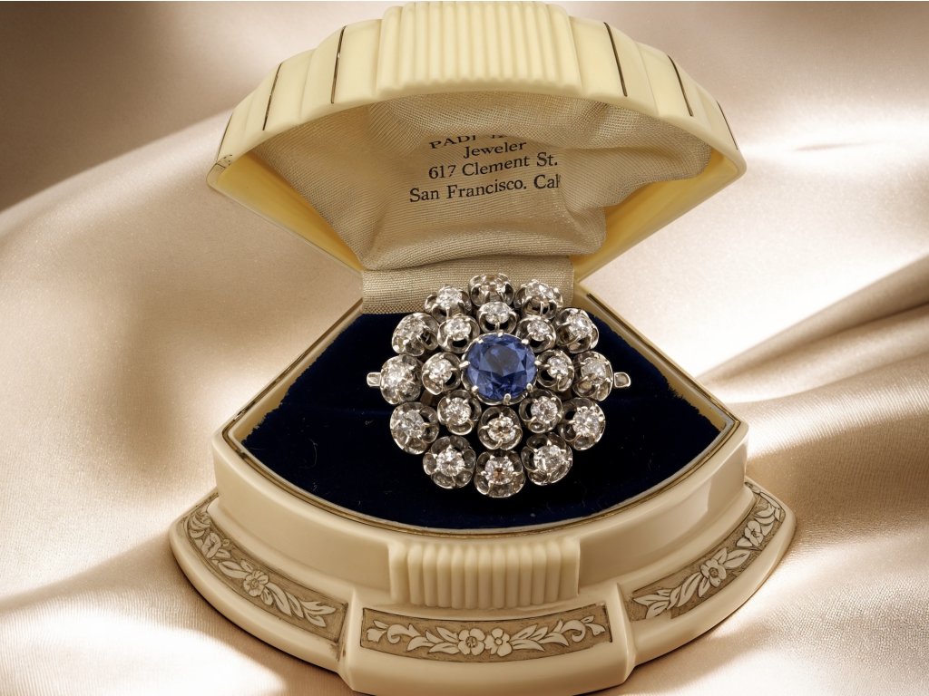 Starožitný Prsten s Cejlonským Safírem a Diamanty No heat Safír z Cejlonu 3ct. a Diamanty 2,65ct. G-J/VS-SI2
