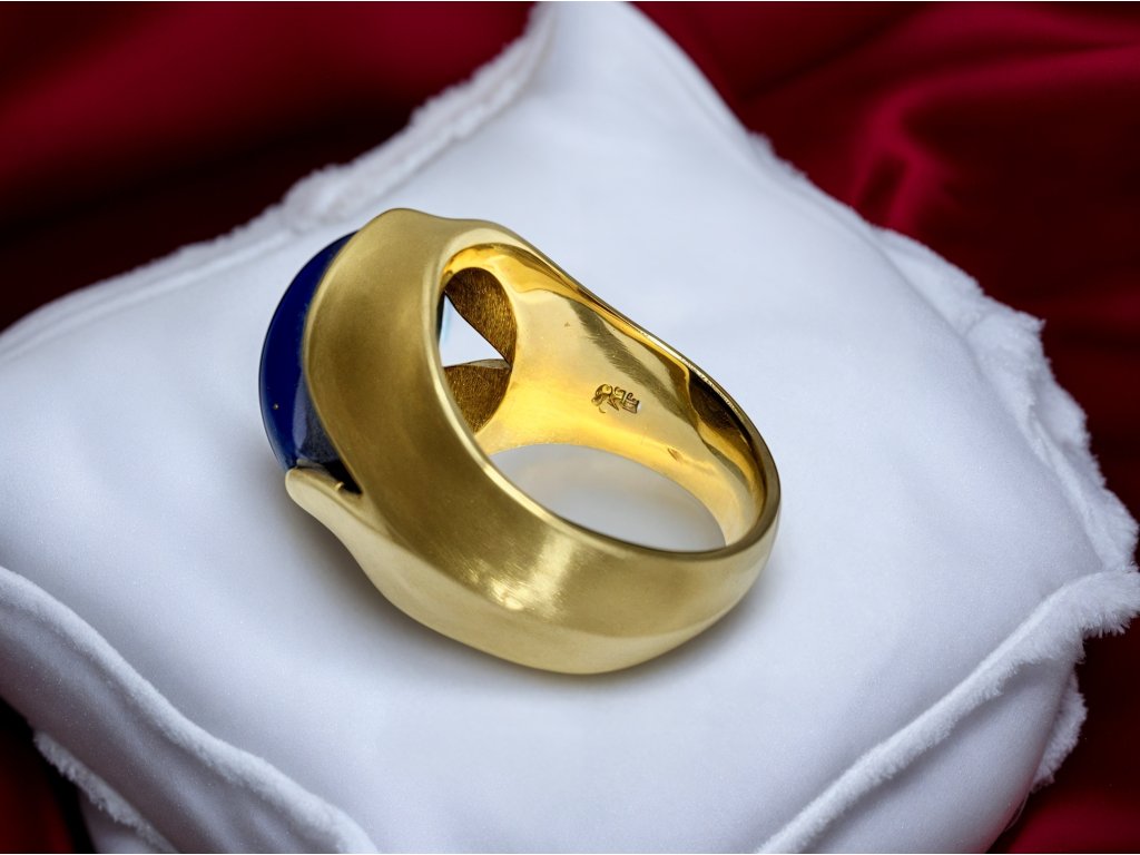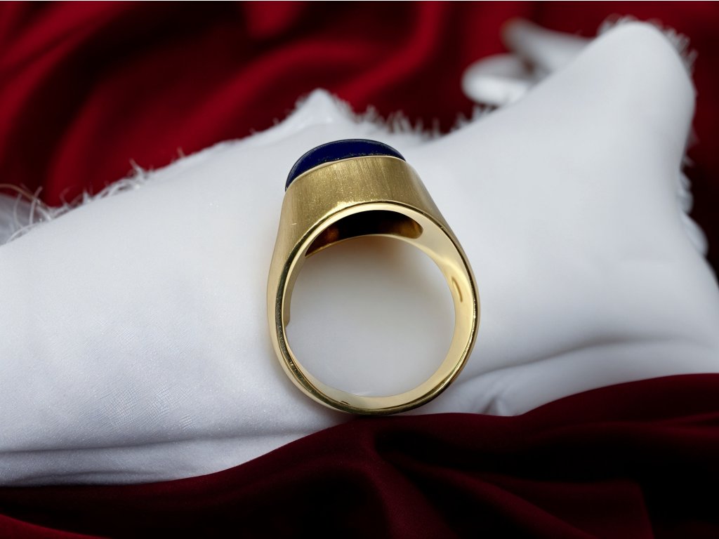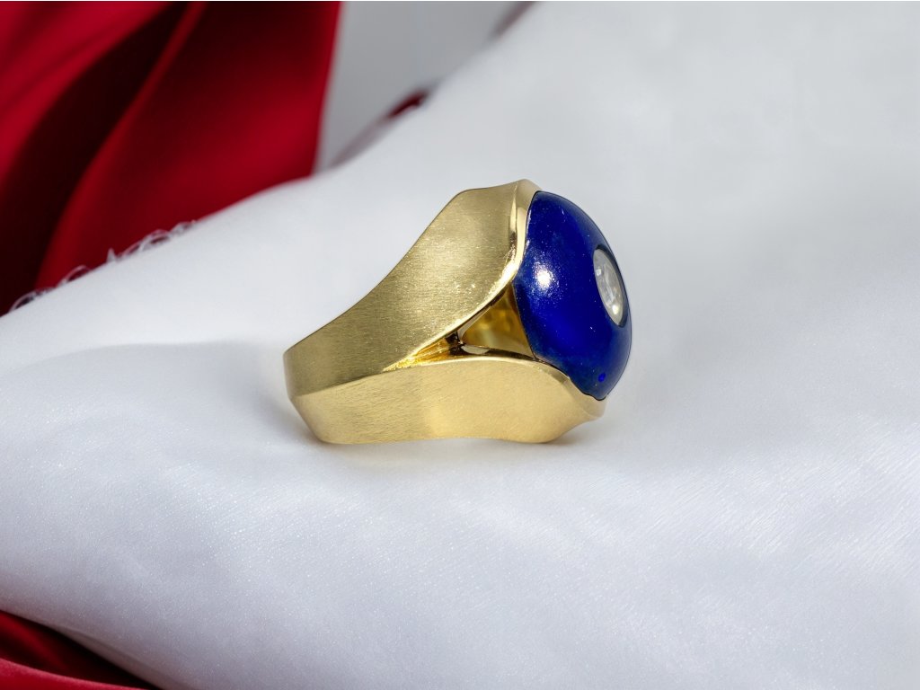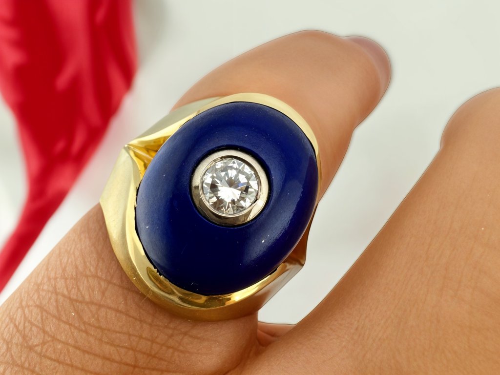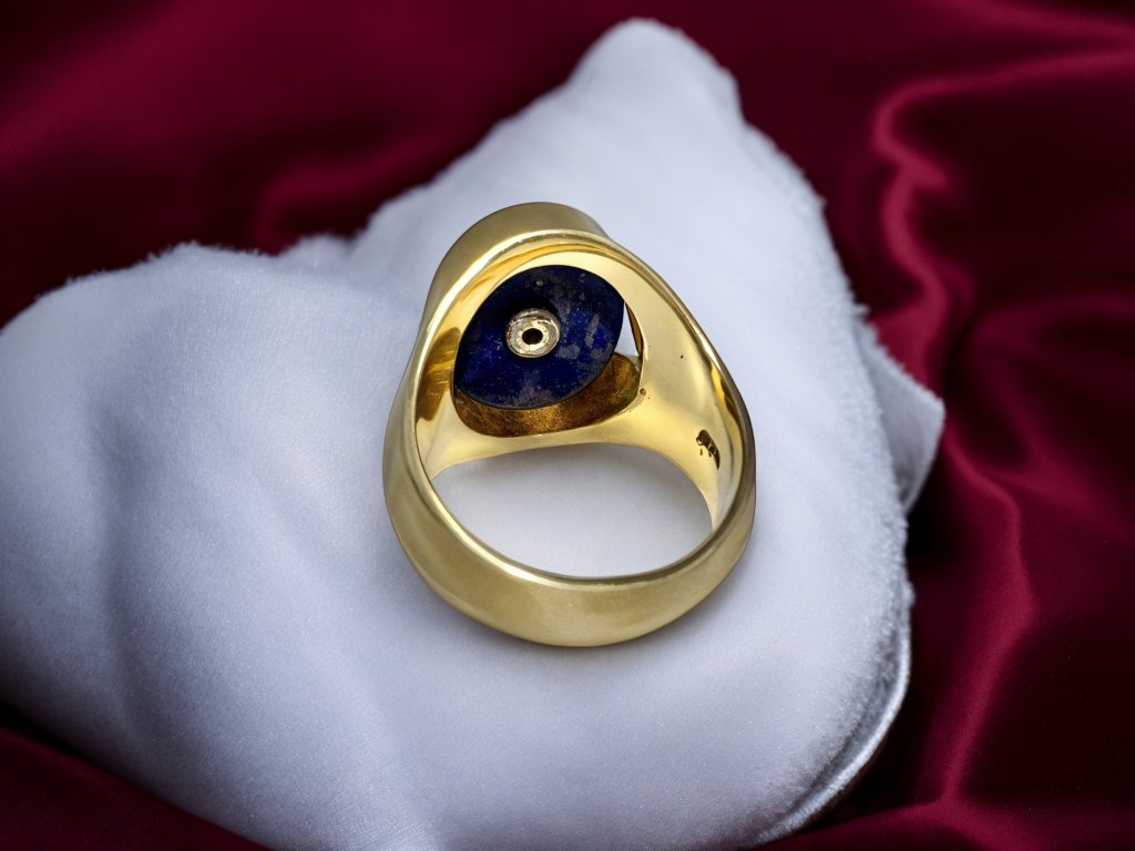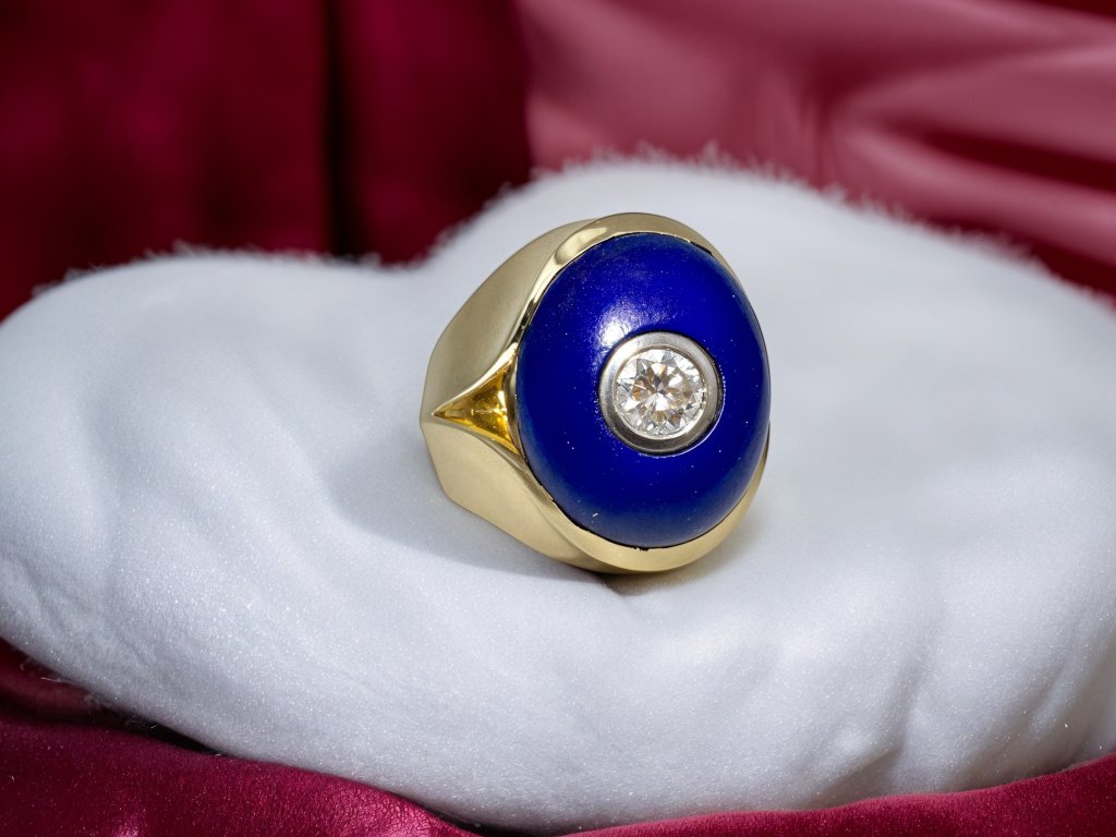 Starožitný Unisex Zlatý Prsten Prsten s Lapisem Lazuli a Diamantem 18k. zlato, Váha 15,12gr., Diamant 0,30ct. K/IF