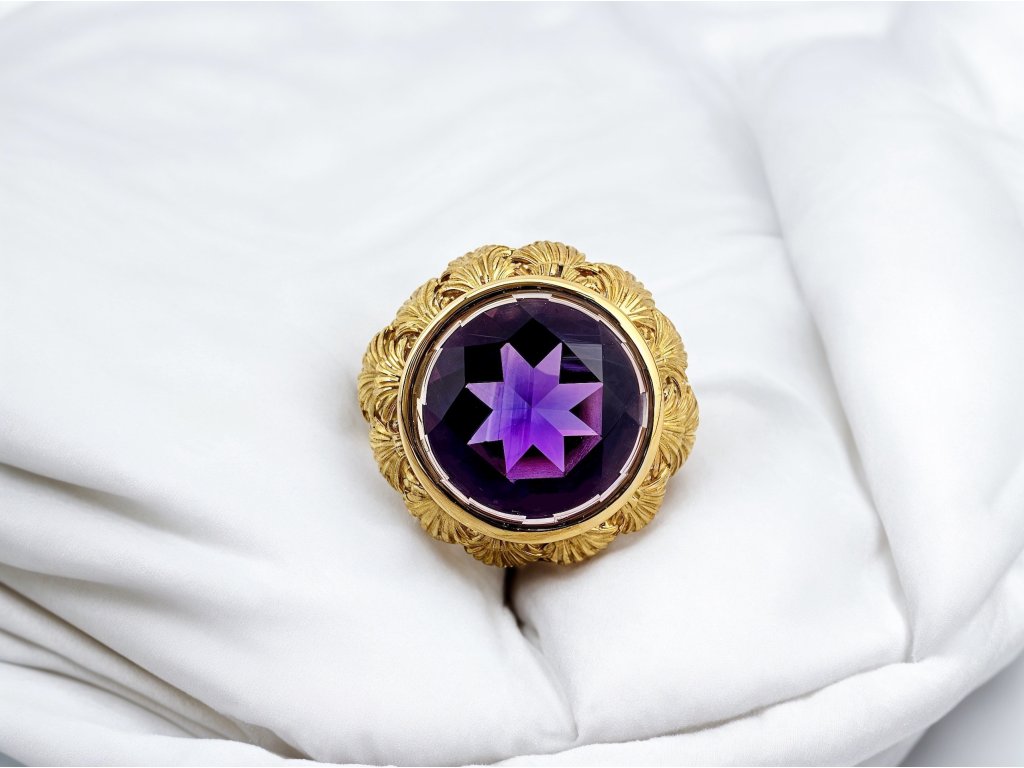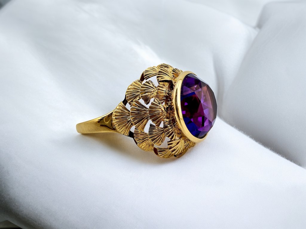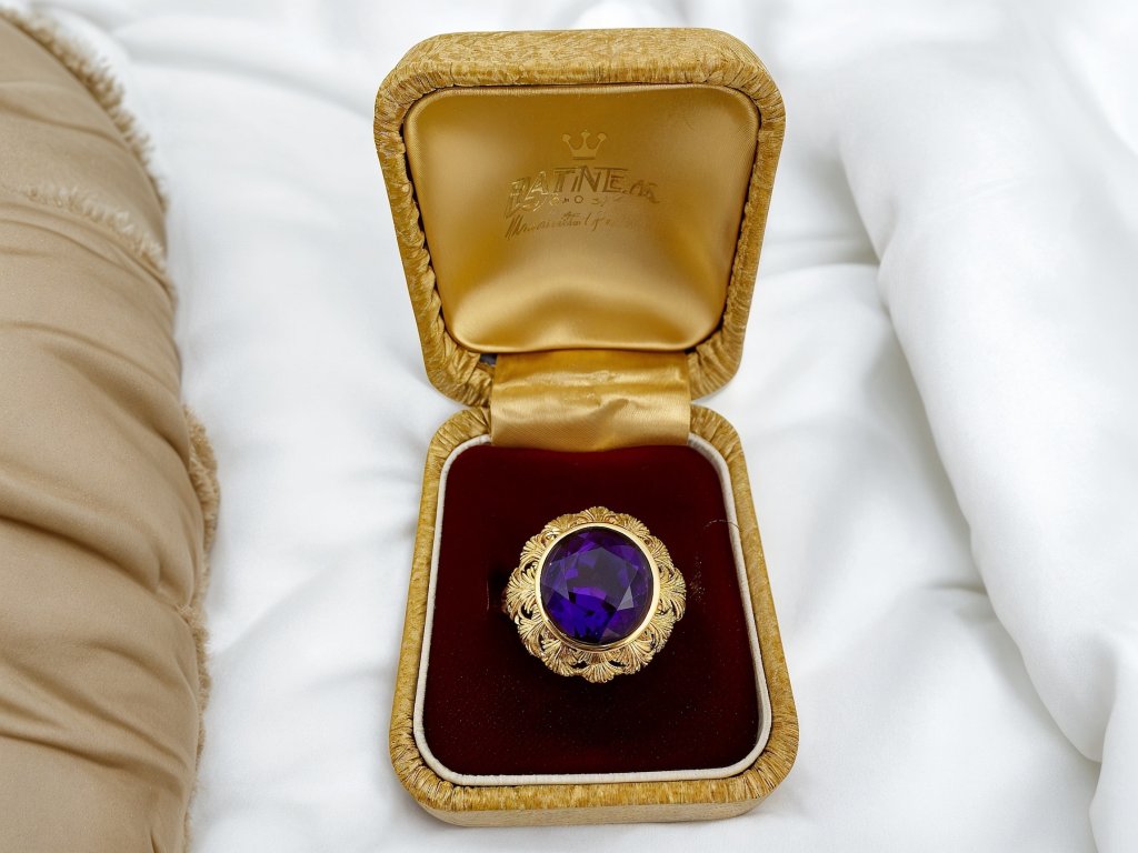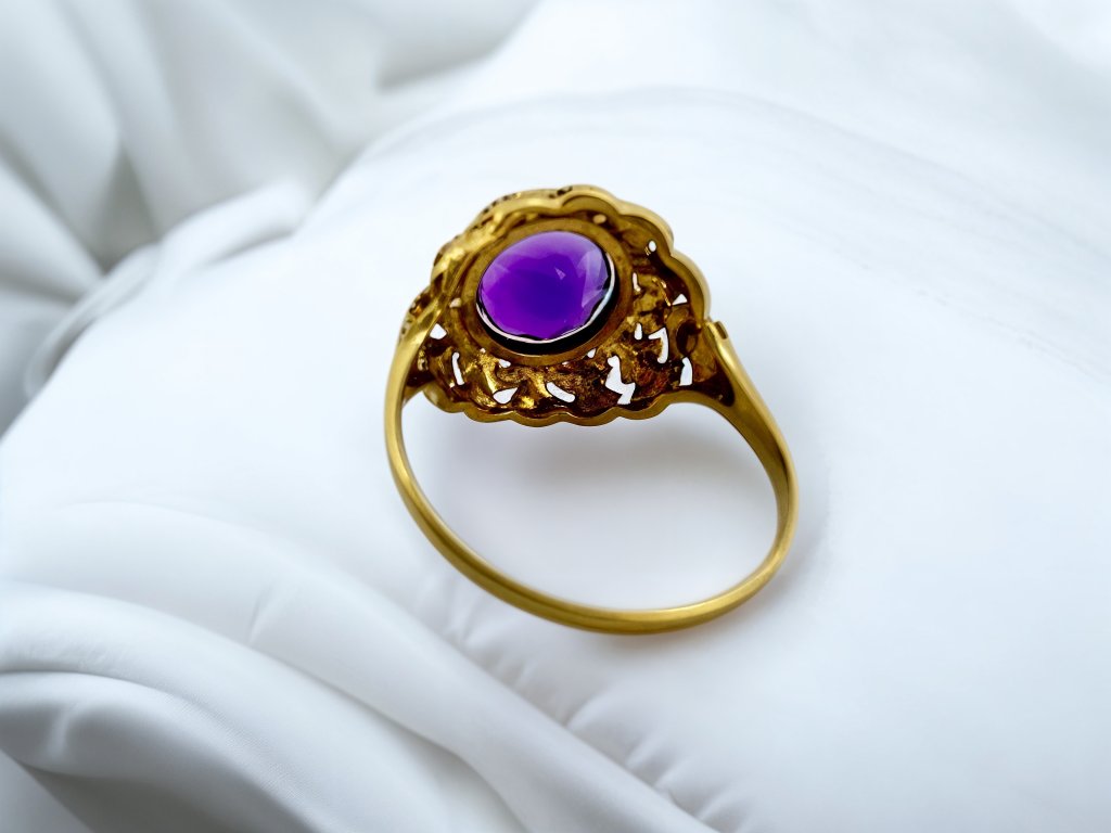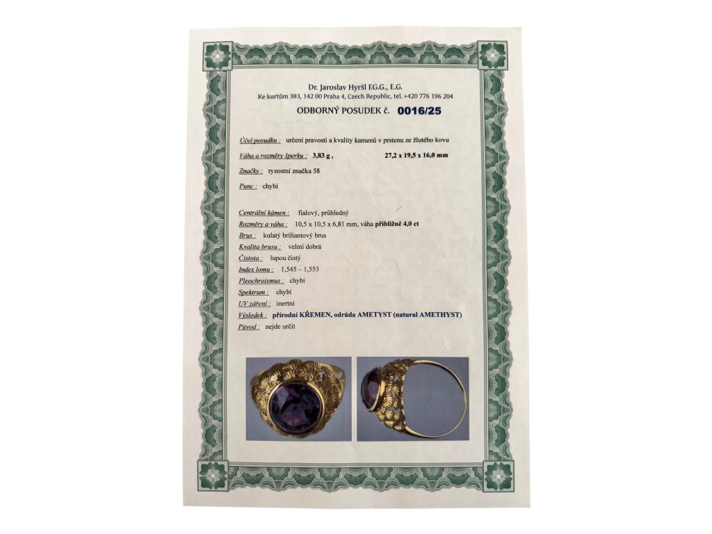 Starožitný Zlatý Prsten s Ametystem 14k. zlato, váha 3,83gr., Ametyst 4ct.
