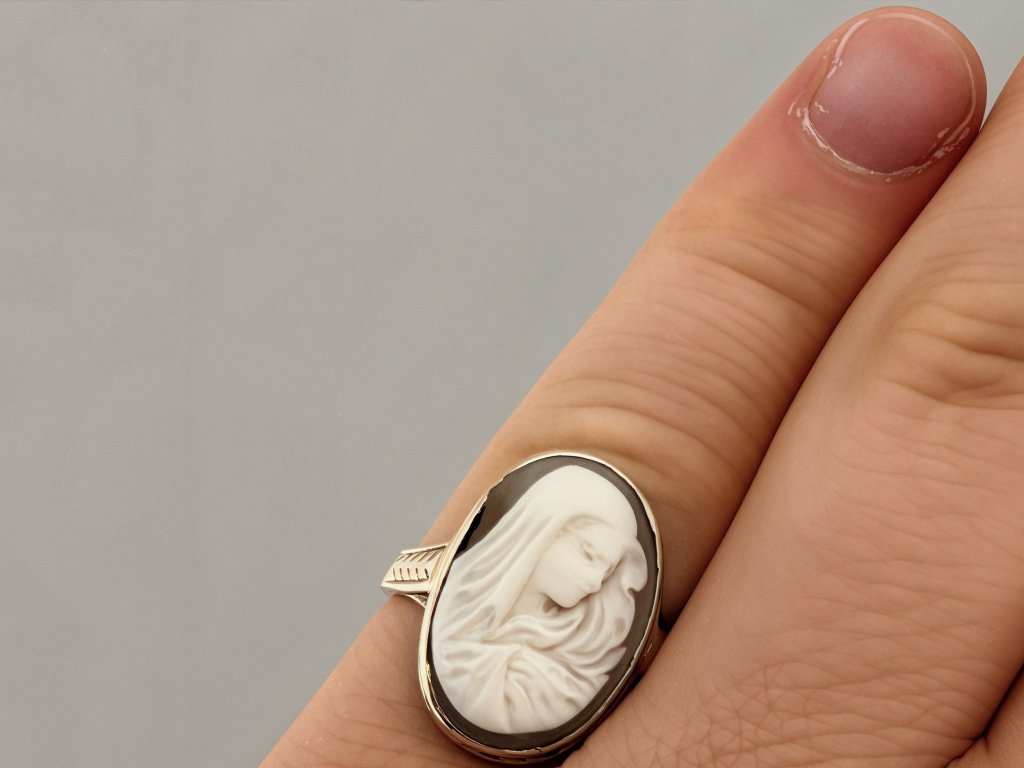 Motiv Panny Marie je tradičně spojován s ochranou, čistotou a mateřskou láskou. Takový šperk není pouze ozdobou, ale i osobním talismanem. V minulosti byly kamejové prsteny často darovány jako výraz úcty, víry či rodinné tradice. Dnes představují nadčasový šperk s duchovním přesahem.