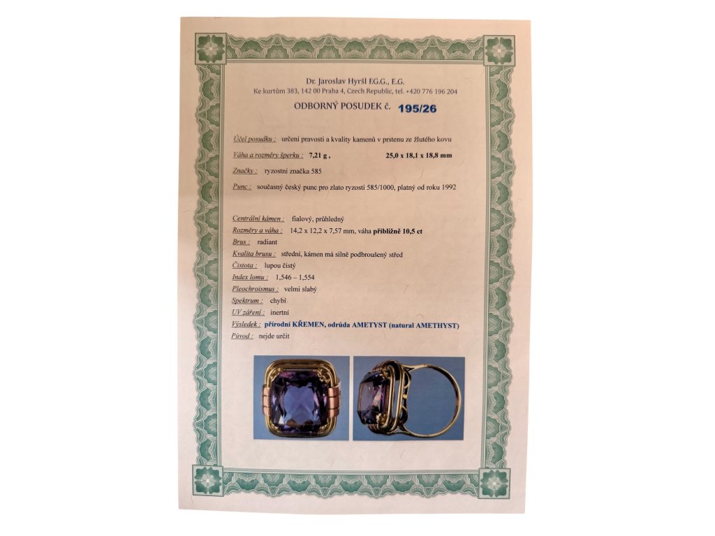 Starožitný Zlatý Prsten s Ametystem 14k zlato, Váha 7,2 gr, Ametyst 10,5 ct