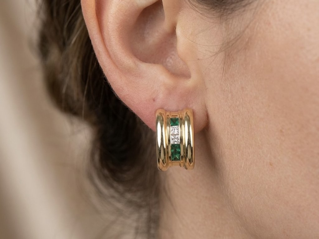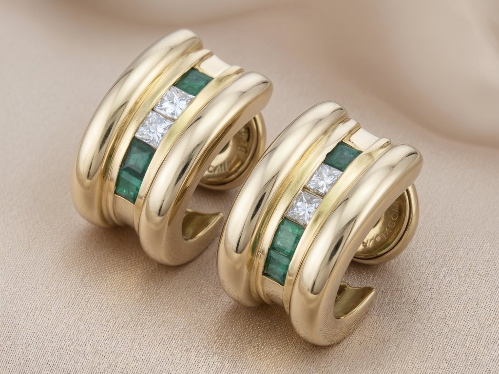 Luxus, který mluví za vás: zlaté náušnice se smaragdy a diamanty