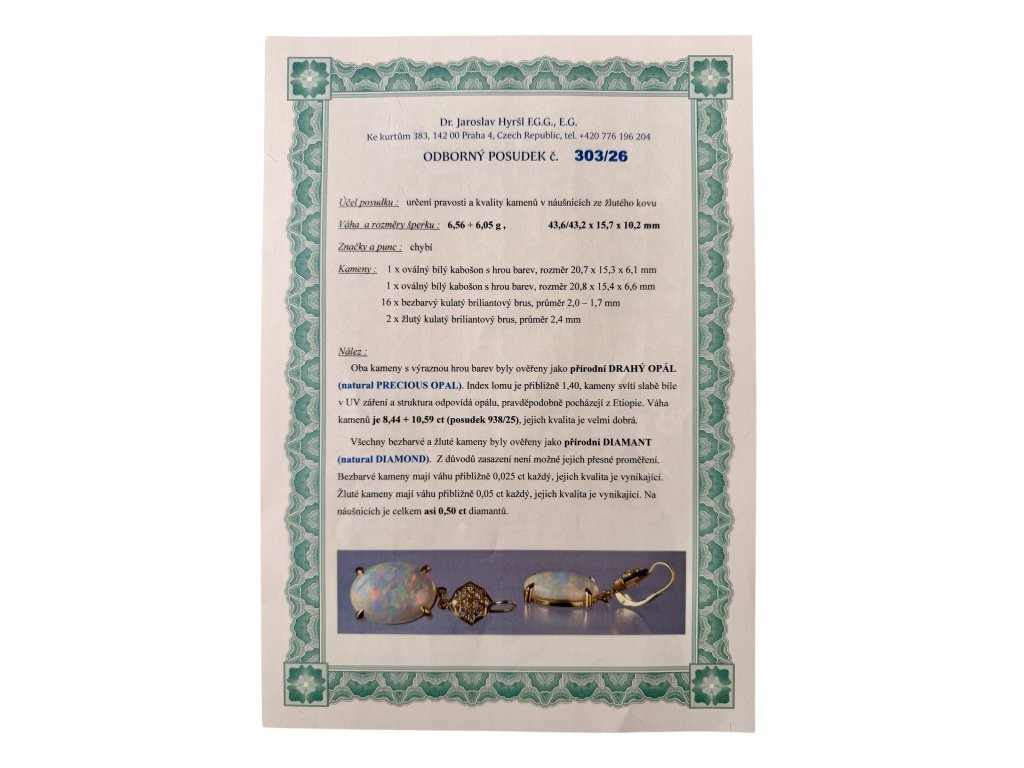 Zlaté Náušnice s Topovými Opály a Diamanty 14k zlato, Diamanty 0,50 ct, Opály 19,03 ct