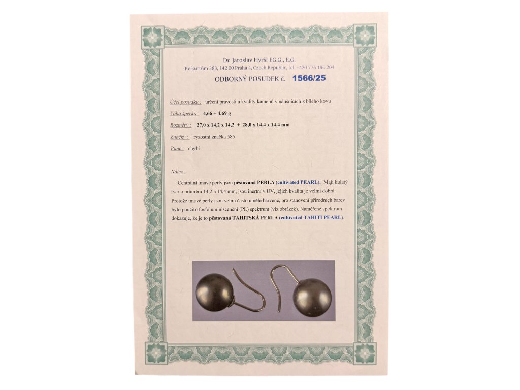 Zlaté Náušnice s Vynikajícími Tahitskými Perlami 14k zlato, Tahitské Perly 14,2-14,4 mm