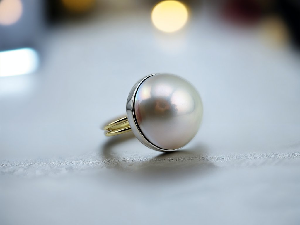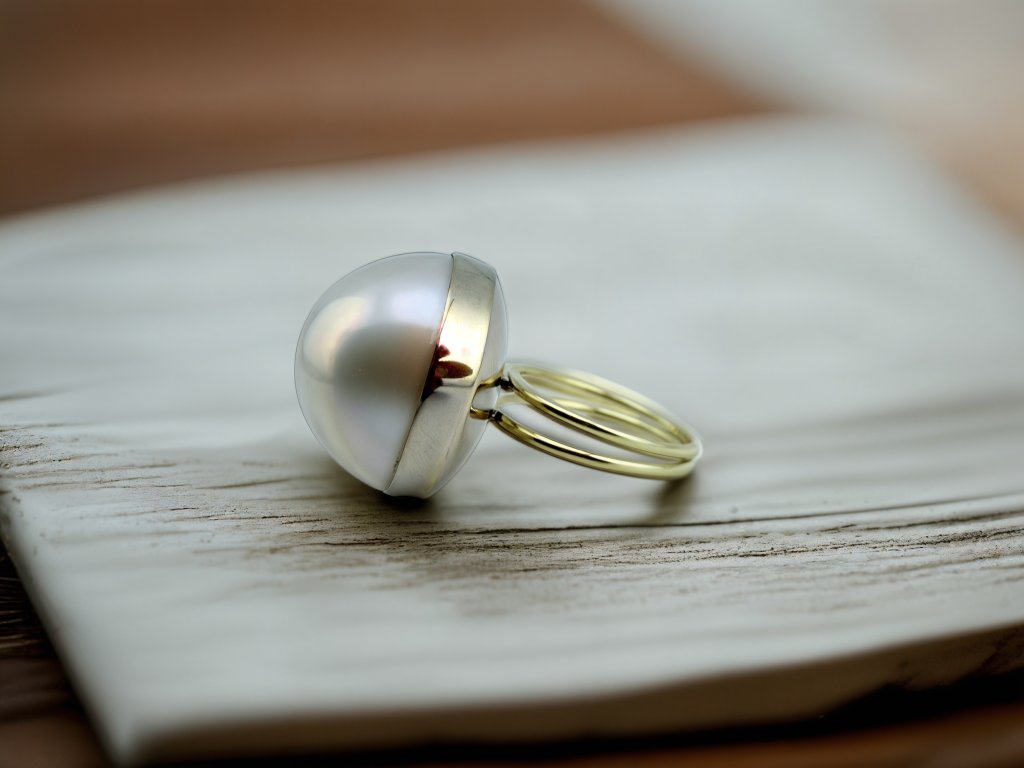 Luxusní prsten s mořskou Mabé perlou – harmonie zlata a moře