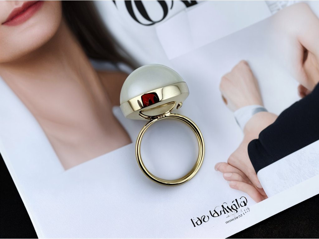 Tento výjimečný prsten zaujme na první pohled svou kombinací bílého 18k a žlutého 14k zlata o váze 9,85 gramů, která vytváří dokonalou rovnováhu mezi luxusem a elegancí. V samém středu září mořská Mabé perla o průměru až 20,5 mm – perla, která se řadí mezi ty nejvzácnější a nejde přehlédnout.
