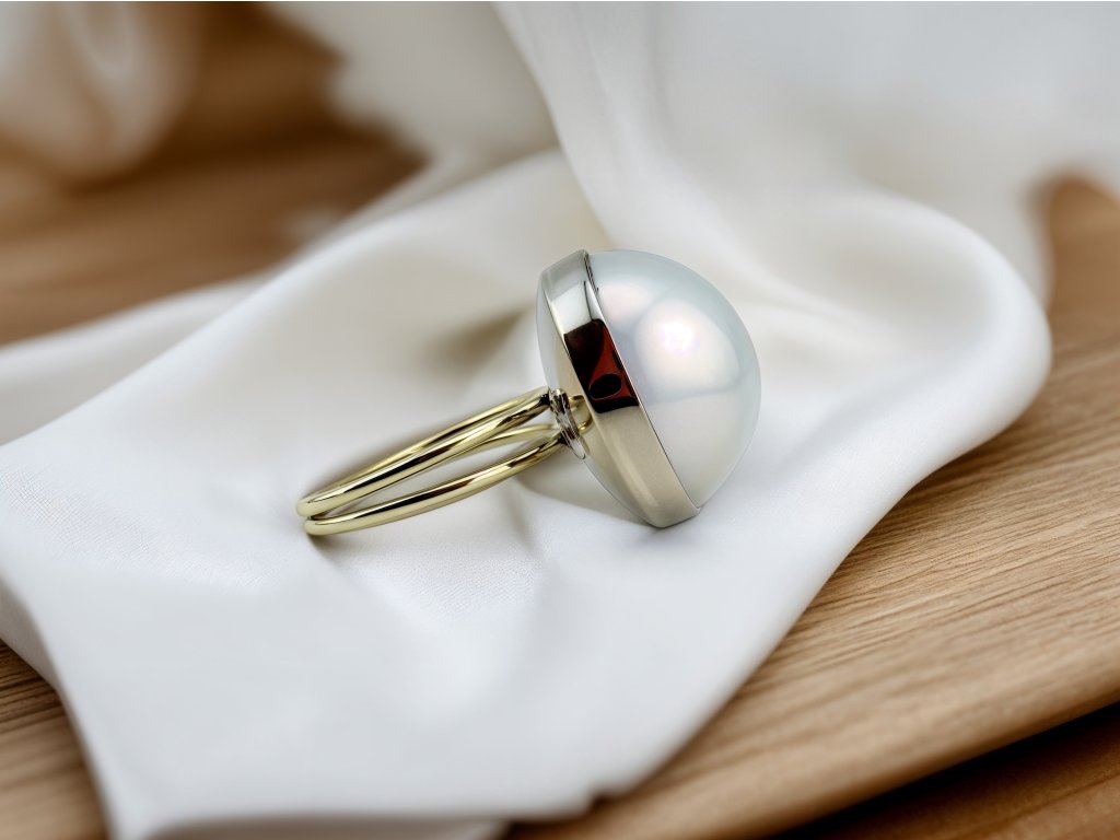 Luxusní prsten s mořskou Mabé perlou – harmonie zlata a moře