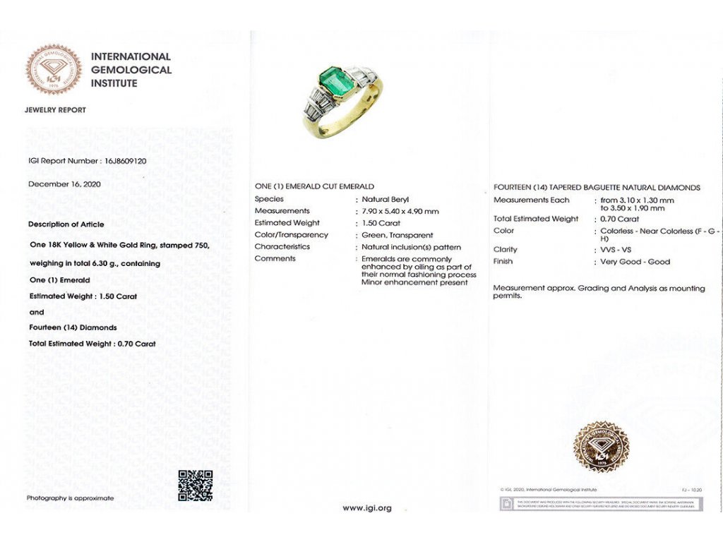 Zlatý Prsten s Vynikajícím Smaragdem a Diamanty 18k zlato, Top Smaragd 1,5 ct, Diamanty 0,70 ct F-H/VVS-VS