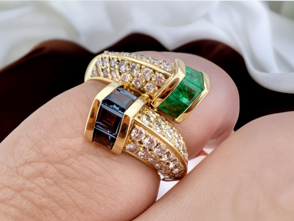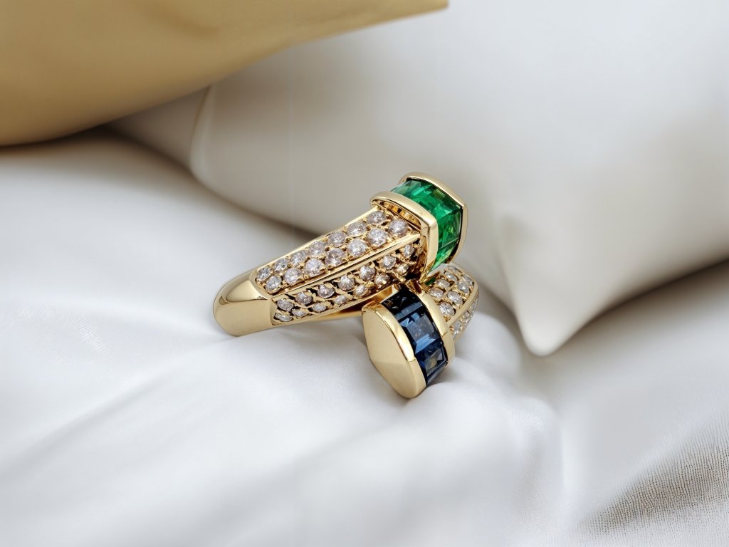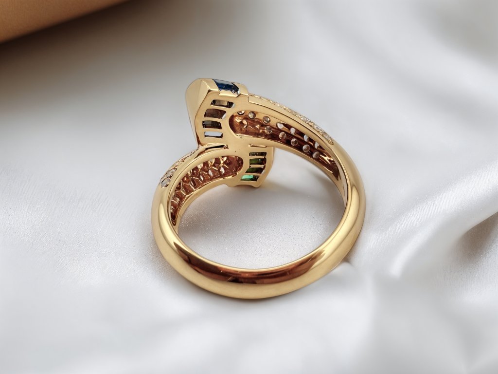 Zlatý prsten s hadí elegancí – spojení smaragdů, safírů a diamantů