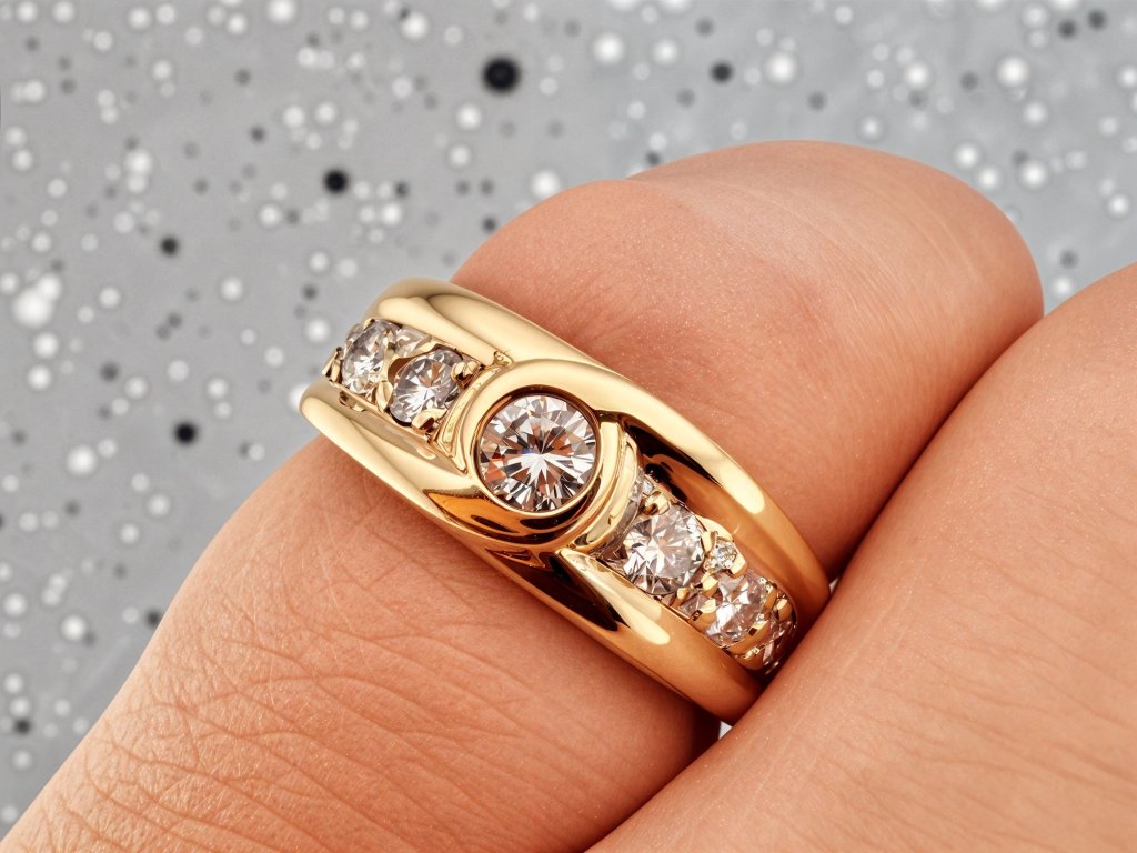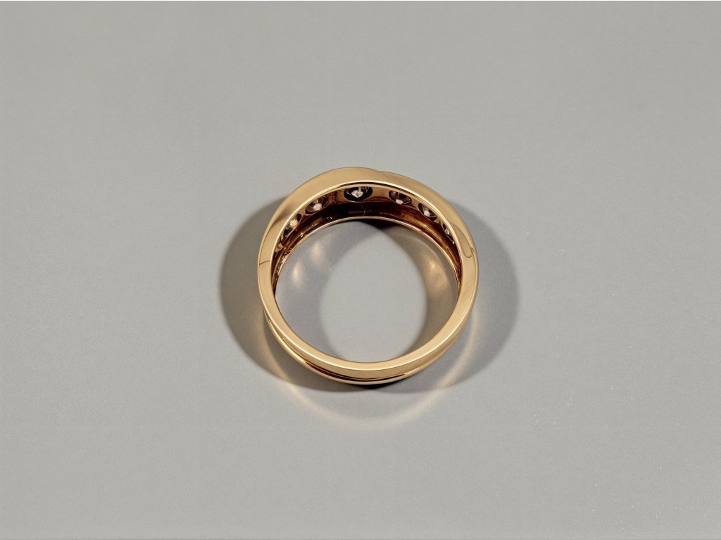 Pečlivě zasazené diamanty vytvářejí souvislou linii světla, jež se nádherně odráží v leštěném zlatě. Kombinace kvalitních kamenů a precizního zpracování dělá z tohoto prstenu šperk, který na ruce působí luxusně, ale zároveň velmi elegantně.
