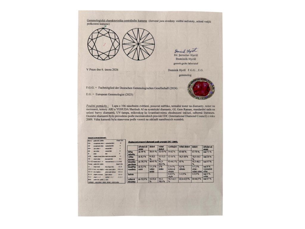 Diamant s krásnou brilancí a vyváženými parametry